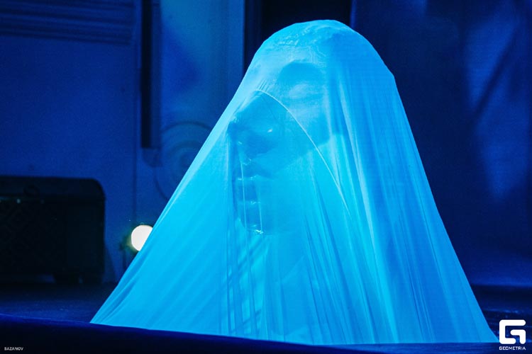 Визуальные эффекты спектакля оформлены с применением нейросети. Над спектаклем работали: