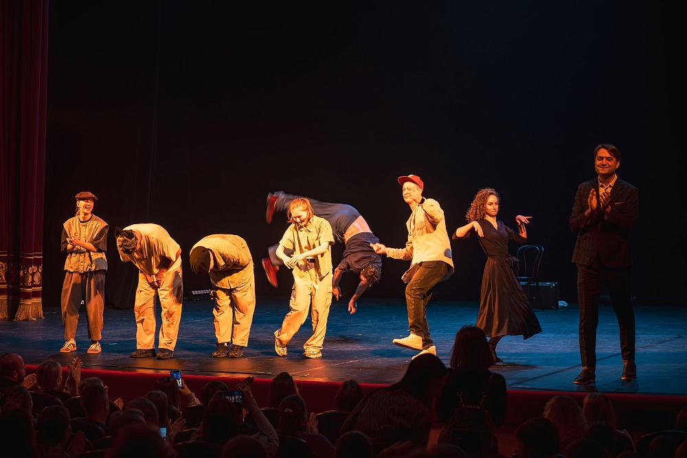 10 марта на сцене Тверского театра драмы случился настоящий художественный эксперимент: танцоры Театра танцев ANGAR представили пластический спектакль «мы — звук», а завершился вечер необычным перформансом «Танцующая поэзия» с актерами театра Тарасом Кузьминым, Александром Крайновым, Геннадием Бабиновым, Ариной Вячиной.
