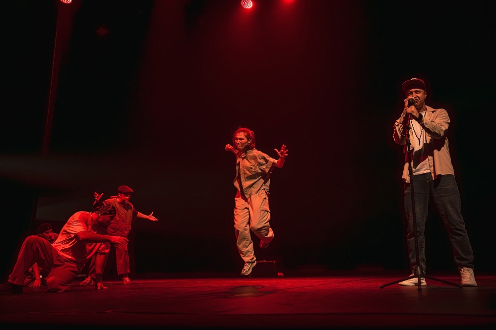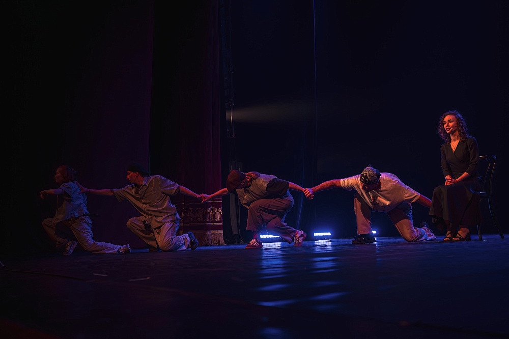 Автором идеи выступил Тарас Кузьмин. Именно благодаря этому замыслу на одной сцене встретились слово, движение и ритм — и, честно говоря, чувствовали себя там вполне комфортно. Поэтические строки неожиданно… начали двигаться. Танец вдруг стал разговаривать стихами. А ритм стихотворения превратился в ритм танца. В какой-то момент стало ясно: это уже не просто эксперимент, а настоящий диалог искусств, где актёрское слово и пластика танца превратились в единое сценическое высказывание.