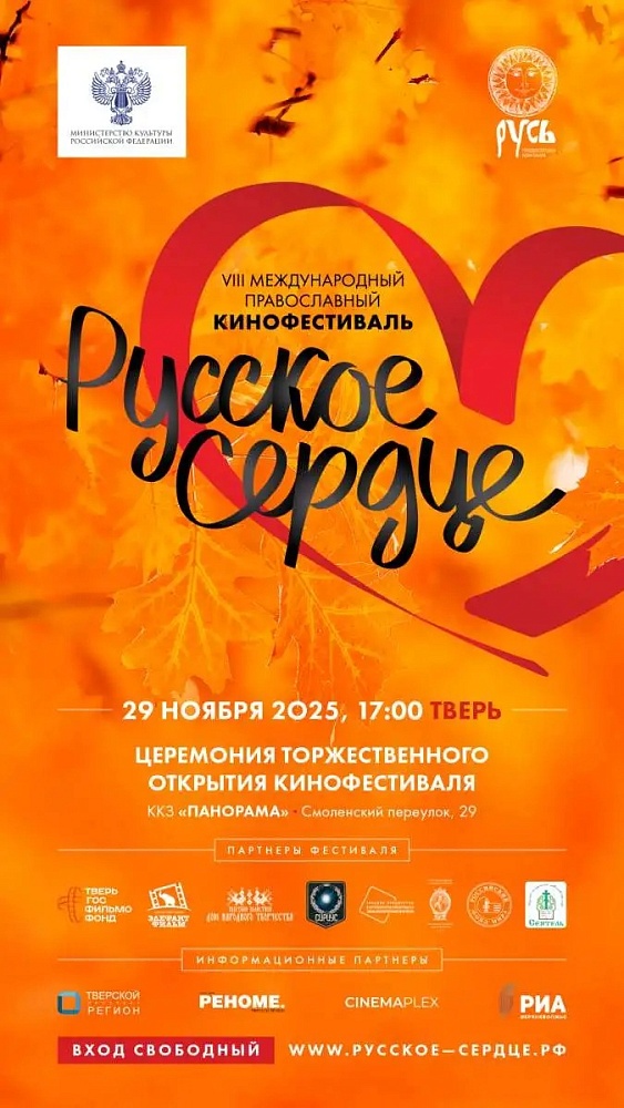 ООО «Русь», АНО «Русское сердце», ООО «Элефант фильм» при поддержке Министерства культуры Российской Федерации и по благословению Митрополита Тверского и Кашинского Амвросия проводят VIII Международный православный кинофестиваль «Русское сердце».