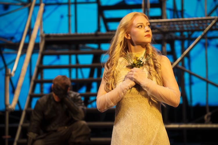 «Гамлет» в прочтении главного режиссера театра Александра Павлишина – одно из самых ярких событий юбилейного сезона. Версия максимально приближена к современности. Средневековый замок Эльсинор сменила лаконичная футуристическая конструкция от одного из самых востребованных столичных художников – Марии Утробиной. Эта сценография – ключ к режиссерскому замыслу. На верхних уровнях, словно на символических небесах, собираются погибшие герои, создавая напряженную взаимосвязь между миром живых и мертвых. В сочетании с живой музыкой этот прием обостряет шекспировские страсти и сомнения, делая их ближе сегодняшнему зрителю. Это не историческая реконструкция, а мощное высказывание о вечных вопросах в актуальном пространстве.