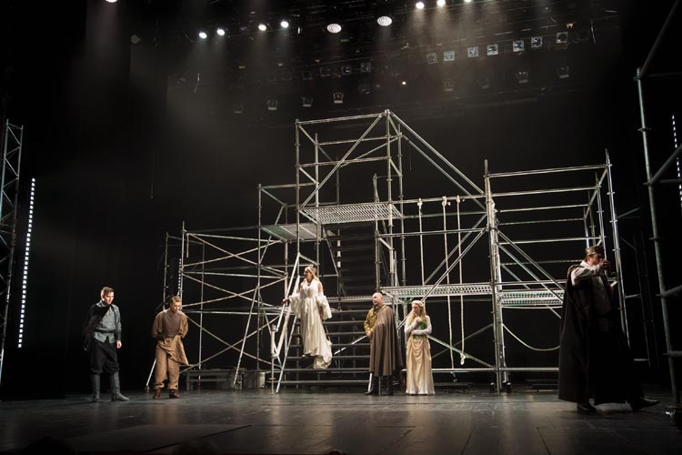 В Тверском академическом театре драмы состоялась премьера «Гамлета»Министерство культуры Тверской области. ВКонтакте. 01.12.2025. Фото — Олег Метлин Трагедия Уильяма Шекспира — одна из самых популярных пьес в истории мировой литературы: её ставят на лучших сценах мира вот уже более четырёх веков. «Гамлет» в прочтении главного режиссёра театра Александра Павлишина — без сомнения, одно из самых ярких событий юбилейного сезона. Версия Павлишина максимально приближена к современности. Средневековый замок Эльсинор сменила лаконичная футуристическая конструкция от одного из самых востребованных столичных художников — Марии Утробиной. Эта сценография — ключ к режиссёрскому замыслу. На верхних уровнях, словно на символических небесах, собираются погибшие герои, создавая напряжённую взаимосвязь между миром живых и мёртвых. В сочетании с живой музыкой этот приём обостряет шекспировские страсти и сомнения, делая их ближе сегодняшнему зрителю. Это не историческая реконструкция, а мощное высказывание о вечных вопросах в актуальном пространстве. Поспешите увидеть! Следующий показ спектакля — 14 декабря. |