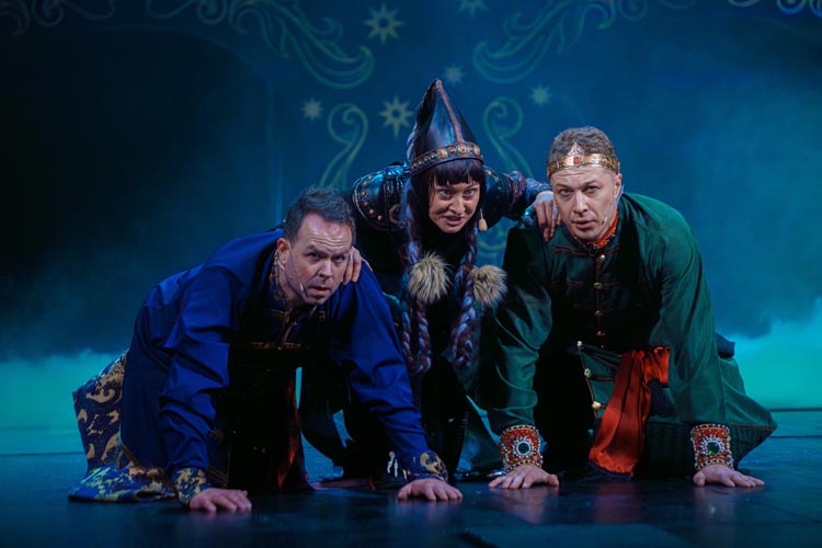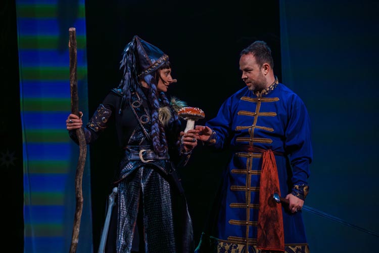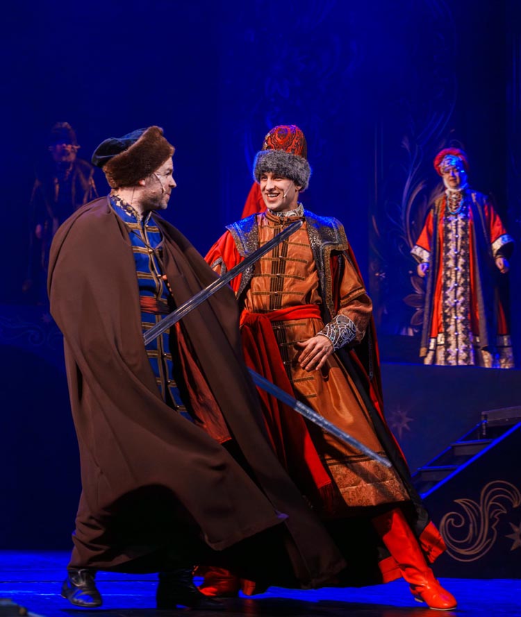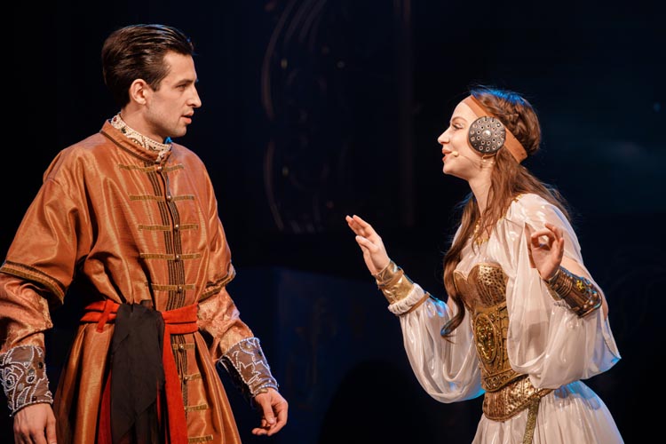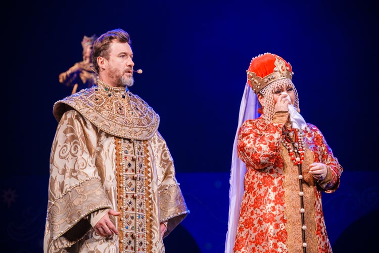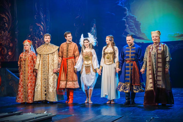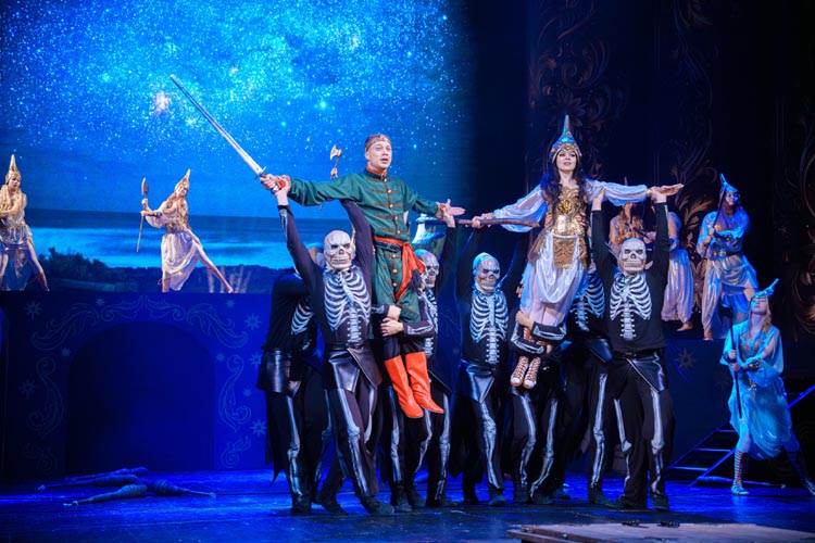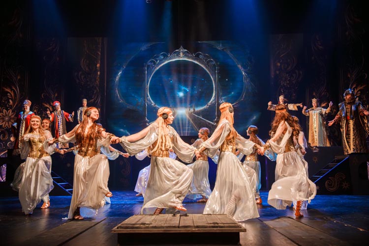 "Марья Моревна и царский сын" О спектакле:В мире сказок, где добро сражается со злом, а любовь побеждает тьму, рождаются уроки, что ведут человека сквозь годы. Вечные темы — героизм, судьба, честь — раскрываются в причудливой канве волшебного повествования. «Марья Моревна и царский сын» — это мозаика из русских народных сказок, где переплелись судьбы легендарных героев и сила волшебных предметов: Кащея, Яги, гуслей самогудов, меча кладенца. Знакомые образы заиграли новыми гранями в неожиданном сюжете. Перед зрителем разворачивается музыкальное фэнтези — праздник красок, чудес и фантастических костюмов. Современная интерпретация сказки становится мостом между прошлым и настоящим, утверждая: высшие ценности человечества не подвластны времени. Марья Моревна — дочь Луны и Солнца, дева лебедь, чья миссия — хранить границу между миром людей и тёмными силами. Её путь пересекается с дорогой Ивана Царевича, которому суждено пройти испытание взросления. Только любовь и дружба дадут ему силы одолеть Кащея и открыть дверь в счастливое будущее. Эта сказка — гимн добру, мужеству, верности и любви. Она шепчет юным сердцам: слушайте старших, чтите их мудрость, берегите советы тех, кто любит вас безгранично. Над спектаклем работали:Режиссёр–постановщик и композитор – Иоланта МельниковаХудожник–постановщик – Николай Юдин Художник по костюмам – Ирина Подосёнкова Балетмейстер–постановщик – Наталия Чернина Режиссер по пластике – Сергей Грищенко Художник по свету – Юлия Дмитриева Проектирование и монтаж видеоэффектов – Павел Глухов Музыкальное оформление – Александр Савченко Ассистенты режиссёра – Анастасия Бурова / Анастасия Кулагина / Екатерина Власова В спектакле заняты:ИВАН, царский сын – Геннадий Бабинов / Фёдор ЦыганокИВАН, царский сын (в детстве) – Ярослав Майский ВАНЯ, кухаркин сын – Никита Берёзкин ВАНЯ, кухаркин сын (в детстве) – Тимофей Майский МАРЬЯ МОРЕВНА – Виктория Козлова / Дарья Осташевская КАЩЕЙ БЕССМЕРТНЫЙ – Алексей Великотный ШЕПТУН, слуга Кащея – Никита Тарасов БАБА ЯГА – Яна Голубева ЦАРЬ ИВАН – Александр Крайнов ЦАРИЦА МАРФА – Татьяна Лугачёва КУХАРКА – Елена Филатова ЛУНА – засл. арт. Дарья Плавинская СОЛНЦЕ – засл. арт. Андрей Журавлёв УМИЛА – Екатерина Юркова / Аполлинария Михайлова МАМКИ–НЯНЬКИ: – нар. арт. Вера Рычкова – засл. арт. Ирина Кириллова – Наталья Бурдина БОЯРЫНИ: – Евгения Голубева – Арина Вячина – Арина Закараускас – Анжелика Панкова – Ирина Погодина – Иоланта Мельникова БОЯРЕ: – нар. арт. Владимир Чернышов – Алексей Майский – Александр Муста – Андрей Недельский – Владислав Янушенок ВОЙСКО КАЩЕЯ и ВОЙСКО МАРЬИ МОРЕВНЫ – артисты театра, студенты Тверского колледжа культуры им. Н.А. Львова |