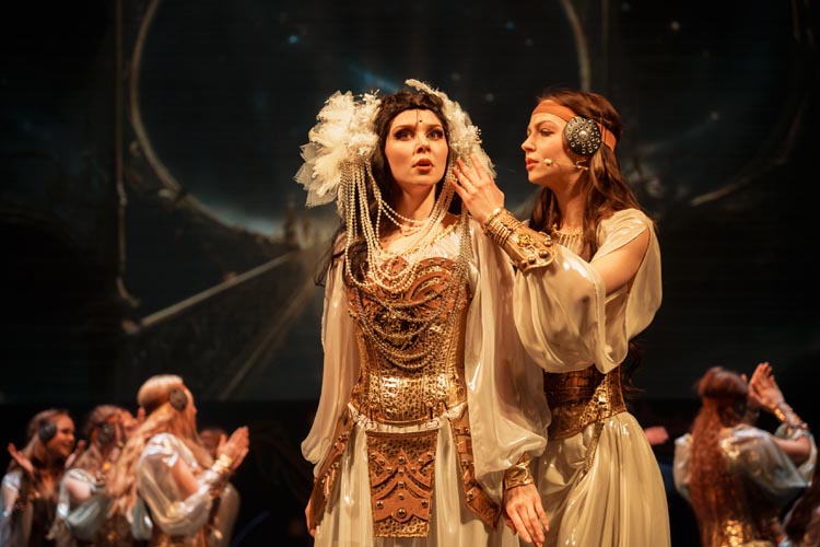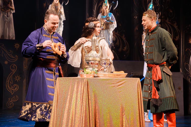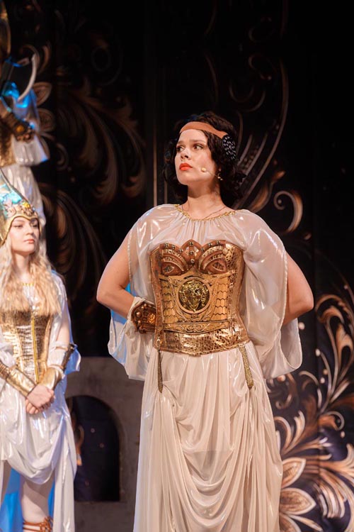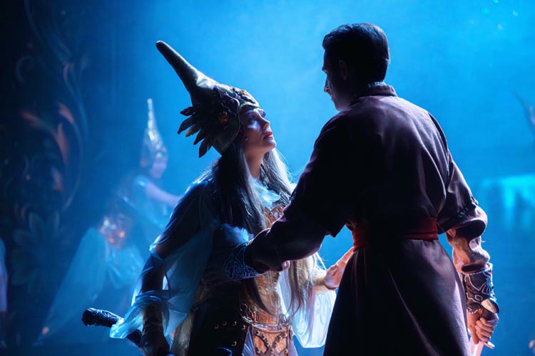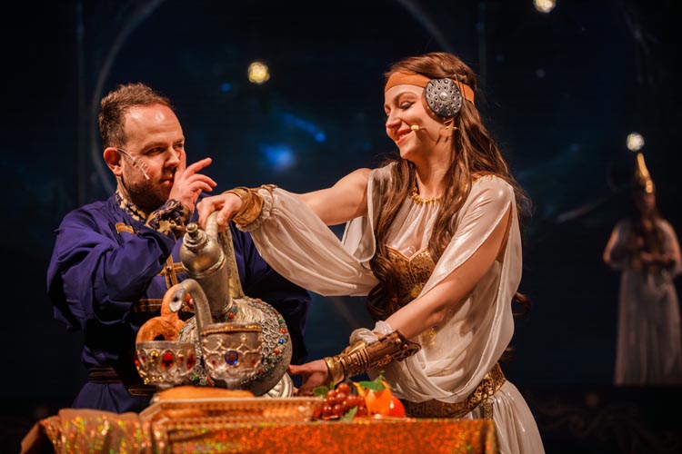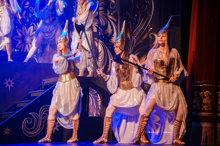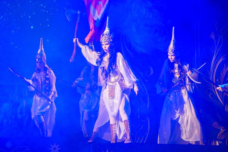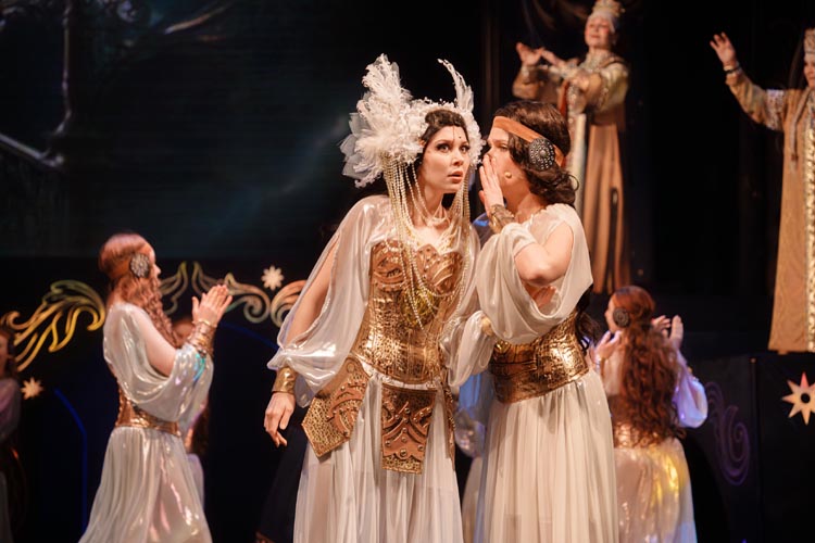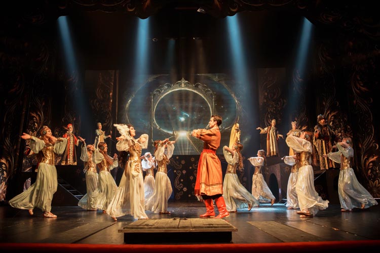 "Марья Моревна и царский сын" О спектакле:В мире сказок, где добро сражается со злом, а любовь побеждает тьму, рождаются уроки, что ведут человека сквозь годы. Вечные темы — героизм, судьба, честь — раскрываются в причудливой канве волшебного повествования. «Марья Моревна и царский сын» — это мозаика из русских народных сказок, где переплелись судьбы легендарных героев и сила волшебных предметов: Кащея, Яги, гуслей самогудов, меча кладенца. Знакомые образы заиграли новыми гранями в неожиданном сюжете. Перед зрителем разворачивается музыкальное фэнтези — праздник красок, чудес и фантастических костюмов. Современная интерпретация сказки становится мостом между прошлым и настоящим, утверждая: высшие ценности человечества не подвластны времени. Марья Моревна — дочь Луны и Солнца, дева лебедь, чья миссия — хранить границу между миром людей и тёмными силами. Её путь пересекается с дорогой Ивана Царевича, которому суждено пройти испытание взросления. Только любовь и дружба дадут ему силы одолеть Кащея и открыть дверь в счастливое будущее. Эта сказка — гимн добру, мужеству, верности и любви. Она шепчет юным сердцам: слушайте старших, чтите их мудрость, берегите советы тех, кто любит вас безгранично. Над спектаклем работали:Режиссёр–постановщик и композитор – Иоланта МельниковаХудожник–постановщик – Николай Юдин Художник по костюмам – Ирина Подосёнкова Балетмейстер–постановщик – Наталия Чернина Режиссер по пластике – Сергей Грищенко Художник по свету – Юлия Дмитриева Проектирование и монтаж видеоэффектов – Павел Глухов Музыкальное оформление – Александр Савченко Ассистенты режиссёра – Анастасия Бурова / Анастасия Кулагина / Екатерина Власова В спектакле заняты:ИВАН, царский сын – Геннадий Бабинов / Фёдор ЦыганокИВАН, царский сын (в детстве) – Ярослав Майский ВАНЯ, кухаркин сын – Никита Берёзкин ВАНЯ, кухаркин сын (в детстве) – Тимофей Майский МАРЬЯ МОРЕВНА – Виктория Козлова / Дарья Осташевская КАЩЕЙ БЕССМЕРТНЫЙ – Алексей Великотный ШЕПТУН, слуга Кащея – Никита Тарасов БАБА ЯГА – Яна Голубева ЦАРЬ ИВАН – Александр Крайнов ЦАРИЦА МАРФА – Татьяна Лугачёва КУХАРКА – Елена Филатова ЛУНА – засл. арт. Дарья Плавинская СОЛНЦЕ – засл. арт. Андрей Журавлёв УМИЛА – Екатерина Юркова / Аполлинария Михайлова МАМКИ–НЯНЬКИ: – нар. арт. Вера Рычкова – засл. арт. Ирина Кириллова – Наталья Бурдина БОЯРЫНИ: – Евгения Голубева – Арина Вячина – Арина Закараускас – Анжелика Панкова – Ирина Погодина – Иоланта Мельникова БОЯРЕ: – нар. арт. Владимир Чернышов – Алексей Майский – Александр Муста – Андрей Недельский – Владислав Янушенок ВОЙСКО КАЩЕЯ и ВОЙСКО МАРЬИ МОРЕВНЫ – артисты театра, студенты Тверского колледжа культуры им. Н.А. Львова |